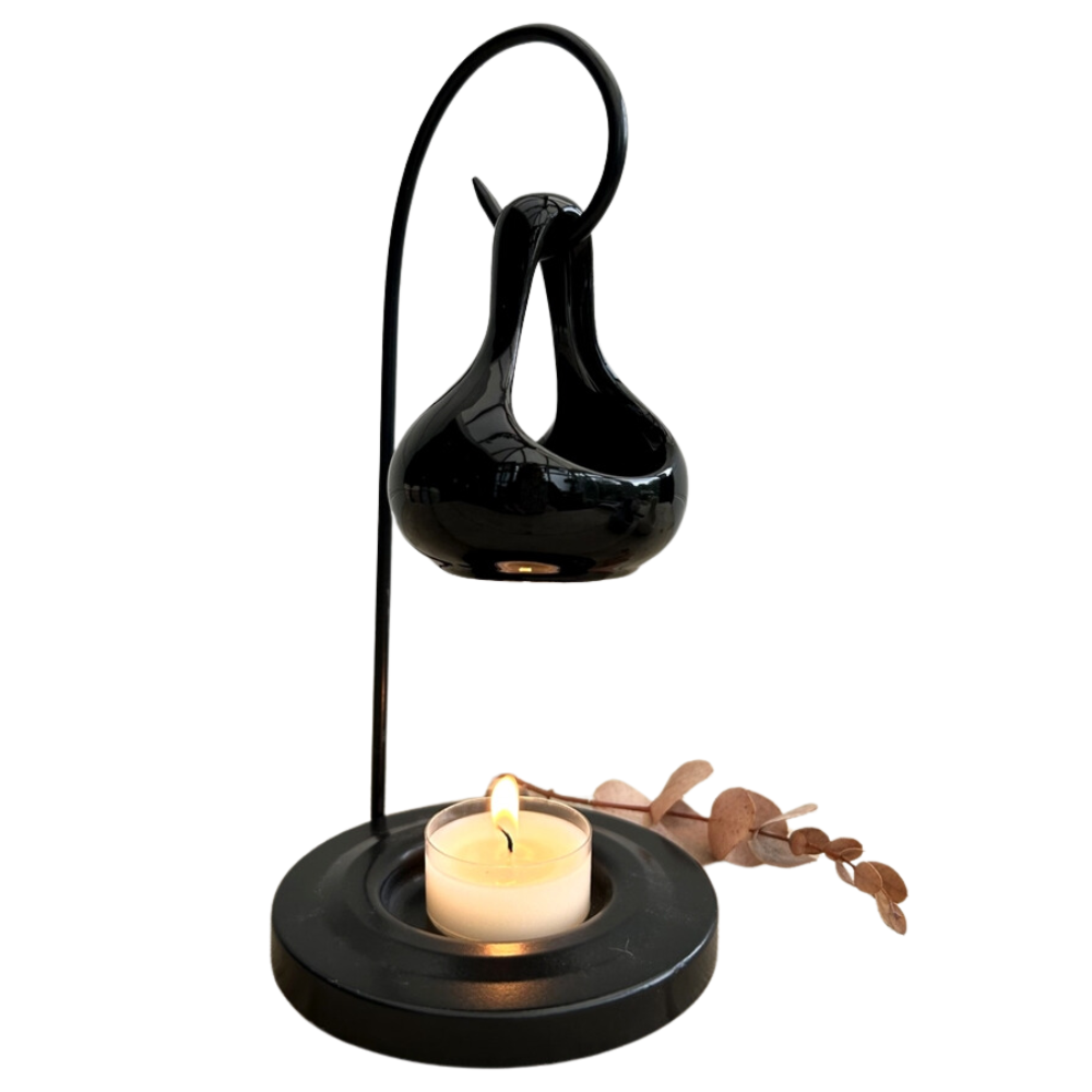 Experience a serene atmosphere with our Black Ceramic Hanging Teardrop Oil Burner & Wax Melter, a stylish and functional piece that combines elegance with practicality. The sleek black metal stand beautifully complements the cream-colored ceramic, creating a stunning addition to any room.