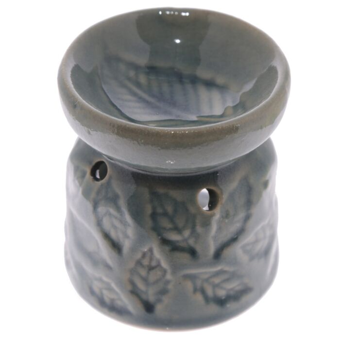 Grey Small Ceramic Wax Oil Burner | Leaves Pattern